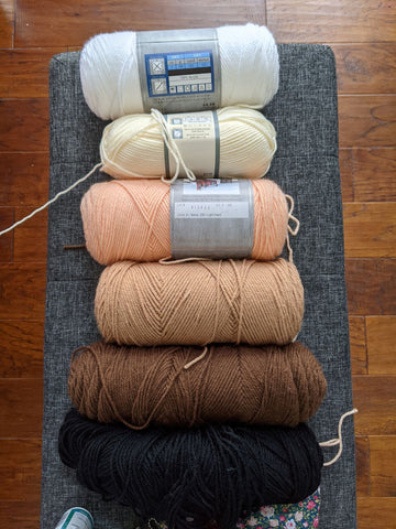 First I gathered my materials! I used worsted weight, acrylic yarn for this project and tried to use the exact colors in the pattern as much as I could. I used 2.75mm and 3.25mm hooks.