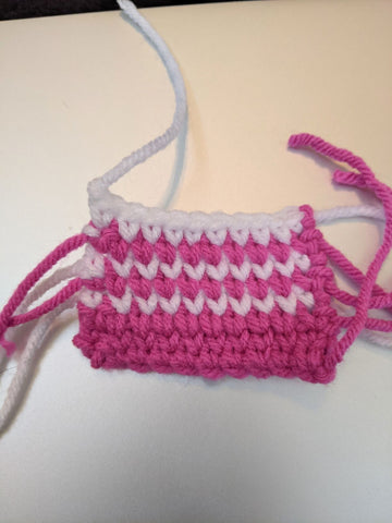 Next morning! Ok the waistcoat stitch looked pretty challenging so I decided to do a practice swatch (I highly recommend this). That way I wouldn't have to worry about learning the new stitch AND color changing AND shaping AND following instructions. I watched some youtube videos and found some bright colors to practice with.
