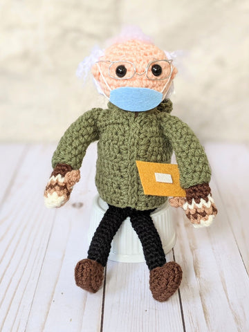 It took a while to make all the pieces and I had to really focus. A faster crocheter would probably be able to make Bernie in less than 5.5 hours, but this is still a complex and time consuming pattern.