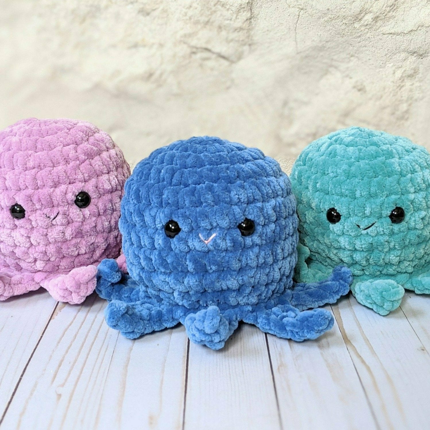 Crochet your own cute fuzzy octopus! This pattern comes as a 4 page downloadable pdf to make your very own octopus. The octopus is done in all one piece with NO extra pieces to sew on. The pattern includes step by step instructions along with a list of needed items and lots of progress photos.