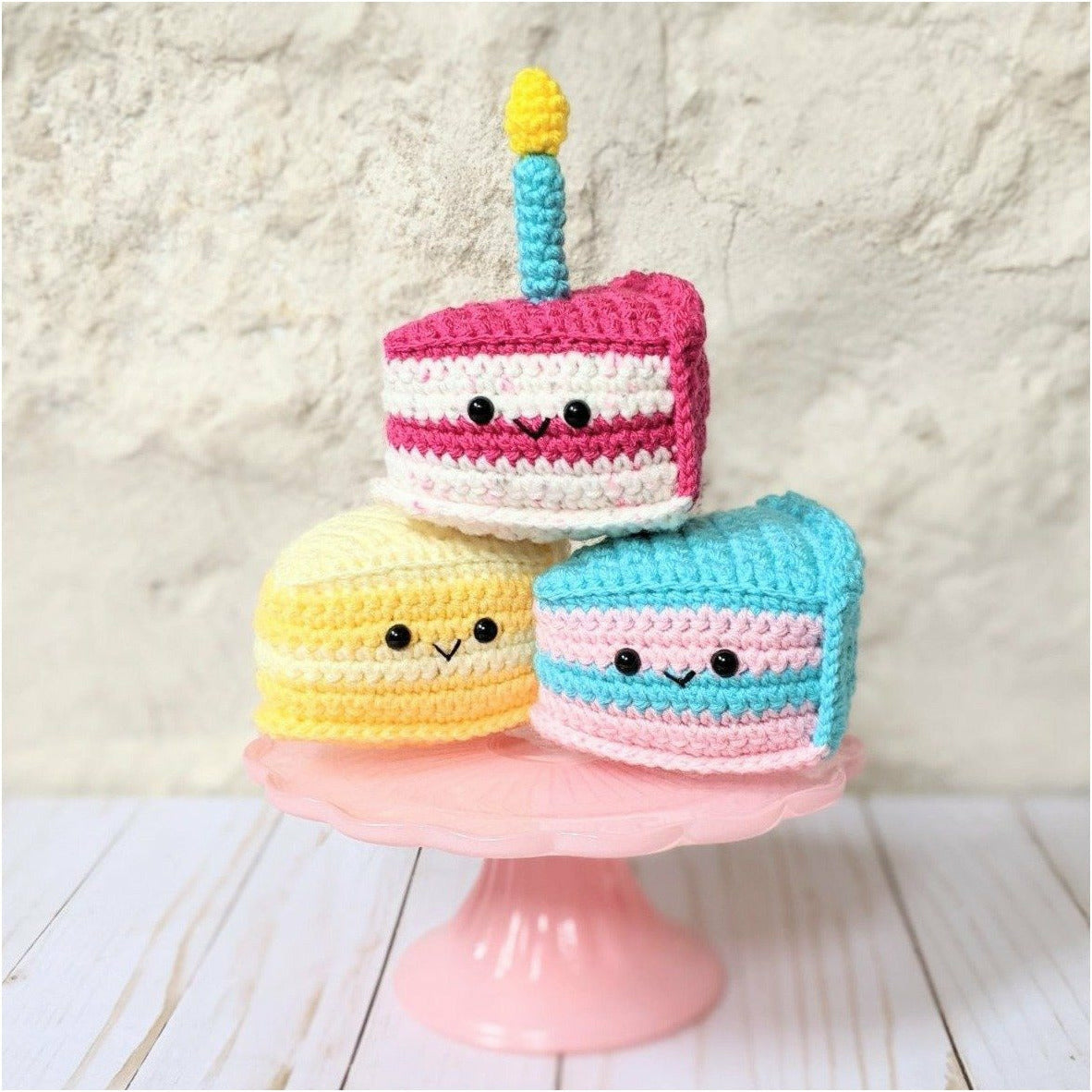 Crochet your own cute little birthday cake slice! This pattern comes as a 6 page downloadable pdf to make your very own cake slice. The pattern includes step by step instructions along with a list of needed items and lots of photos.