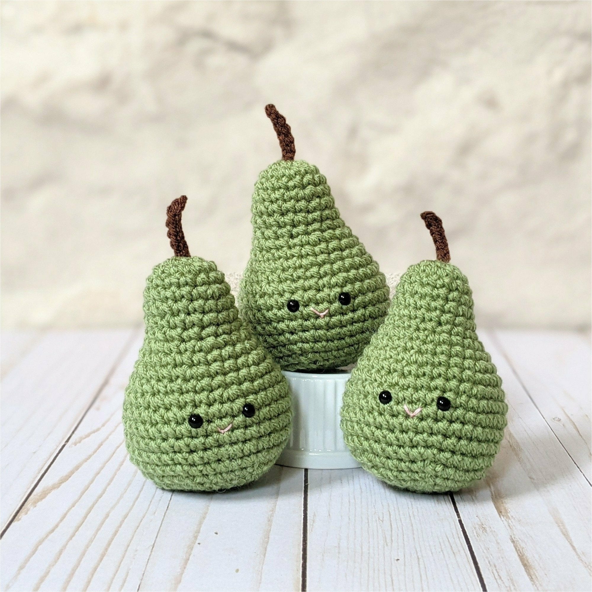 Crochet your own cute little lunchbox fruits! This pattern pack comes with 4 patterns - Apple, Banana, Orange, and Pear. They are all in one easy document. The patterns includes step by step instructions along with a list of needed items and lots of photos.