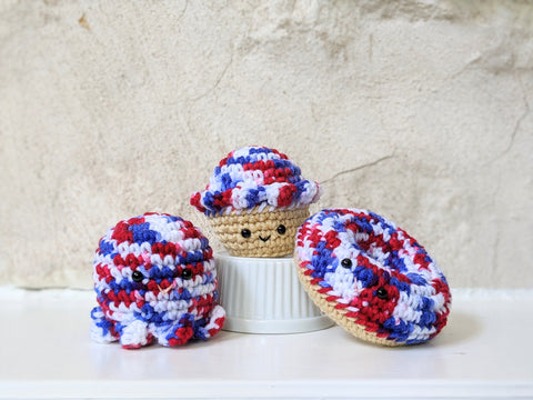 Happy 4th of July, everyone! I bought this yarn just for the occasion and tried it out on 3 fun patterns - the baby octopus, cupcake, and donut! How fun!