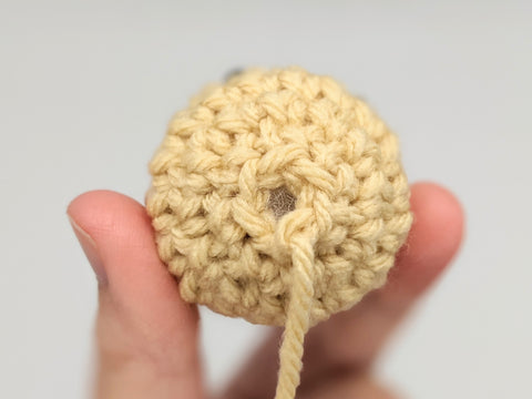 Pause here to add 6mm safety eyes between rounds 4 and 5, with 2 sts between the eyes. With embroidery thread, add a cute smile in the round below.