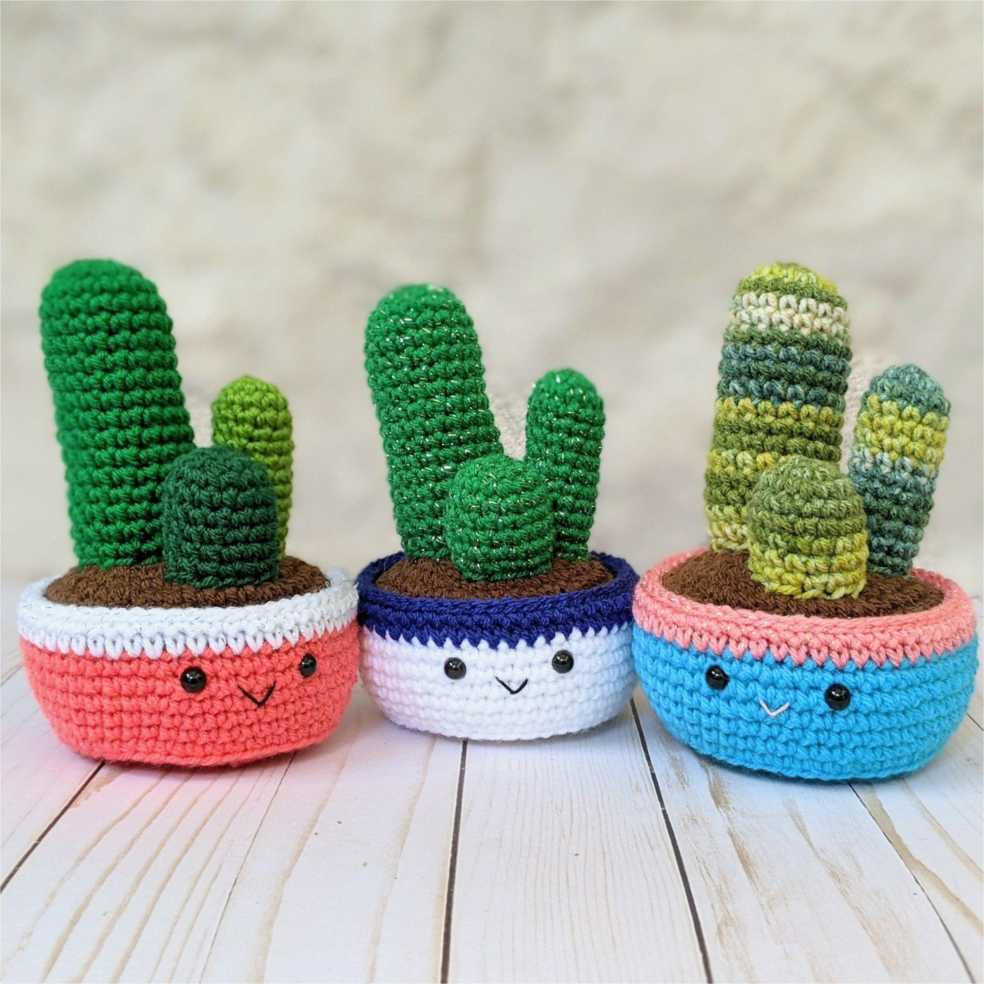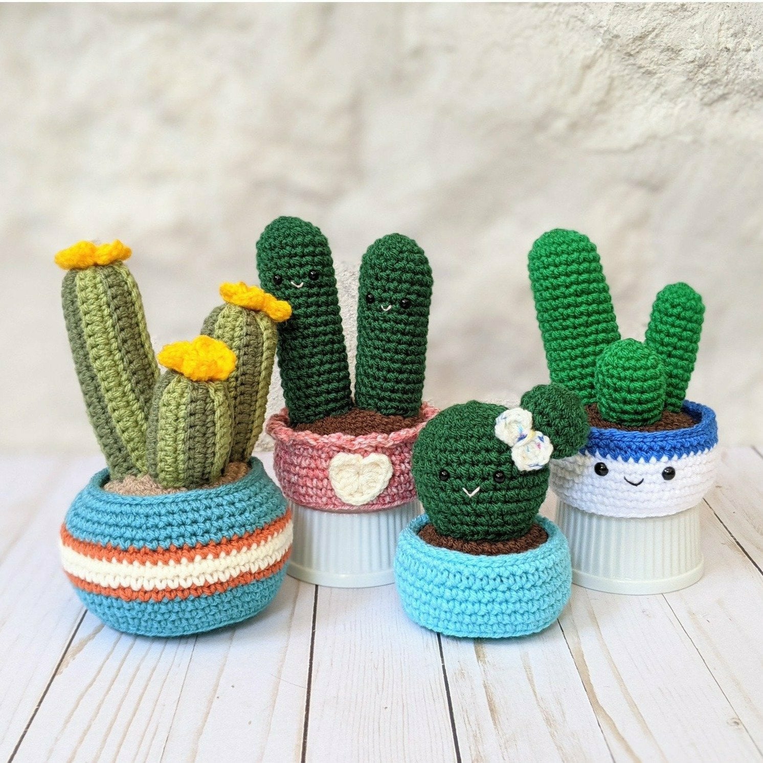 Crochet your own cute cactus trio! This pattern comes as a 4 page downloadable pdf to make your very own potted cacti. The pattern includes step by step instructions along with a list of needed items and lots of progress photos.
