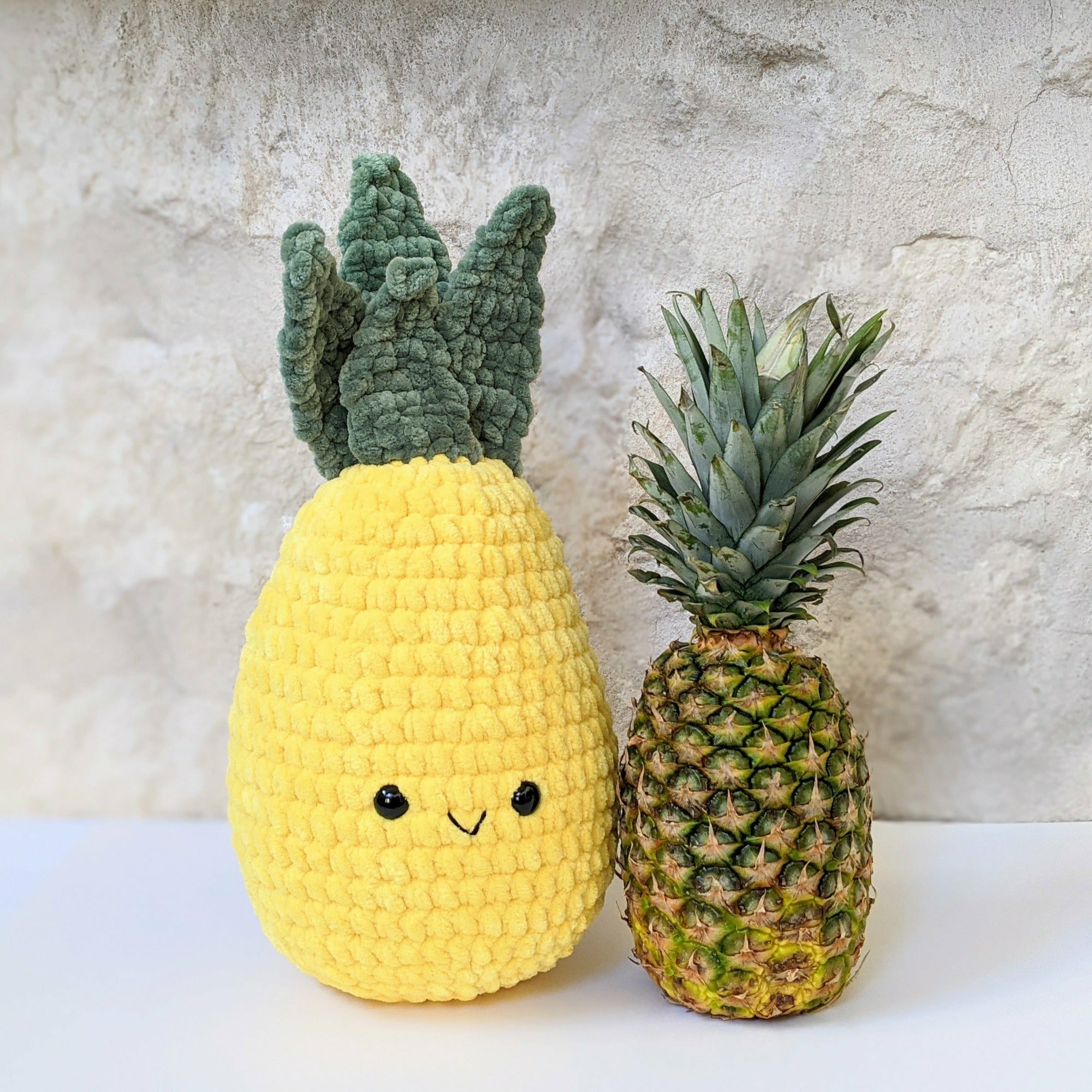Crochet your own jumbo fuzzy pineapple! This pattern comes as a 4 page downloadable pdf to make your very own pineapple. The pattern includes step by step instructions along with a list of needed items and pictures of the finished work.