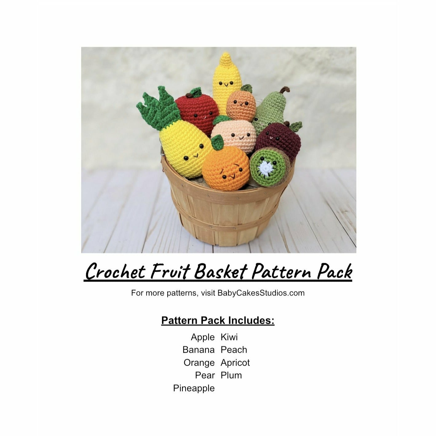 CROCHET PATTERN PACK: Fruit Basket - Apple, Banana, Orange, Pear, , Pineapple, Kiwi, Peach, Apricot, Plum